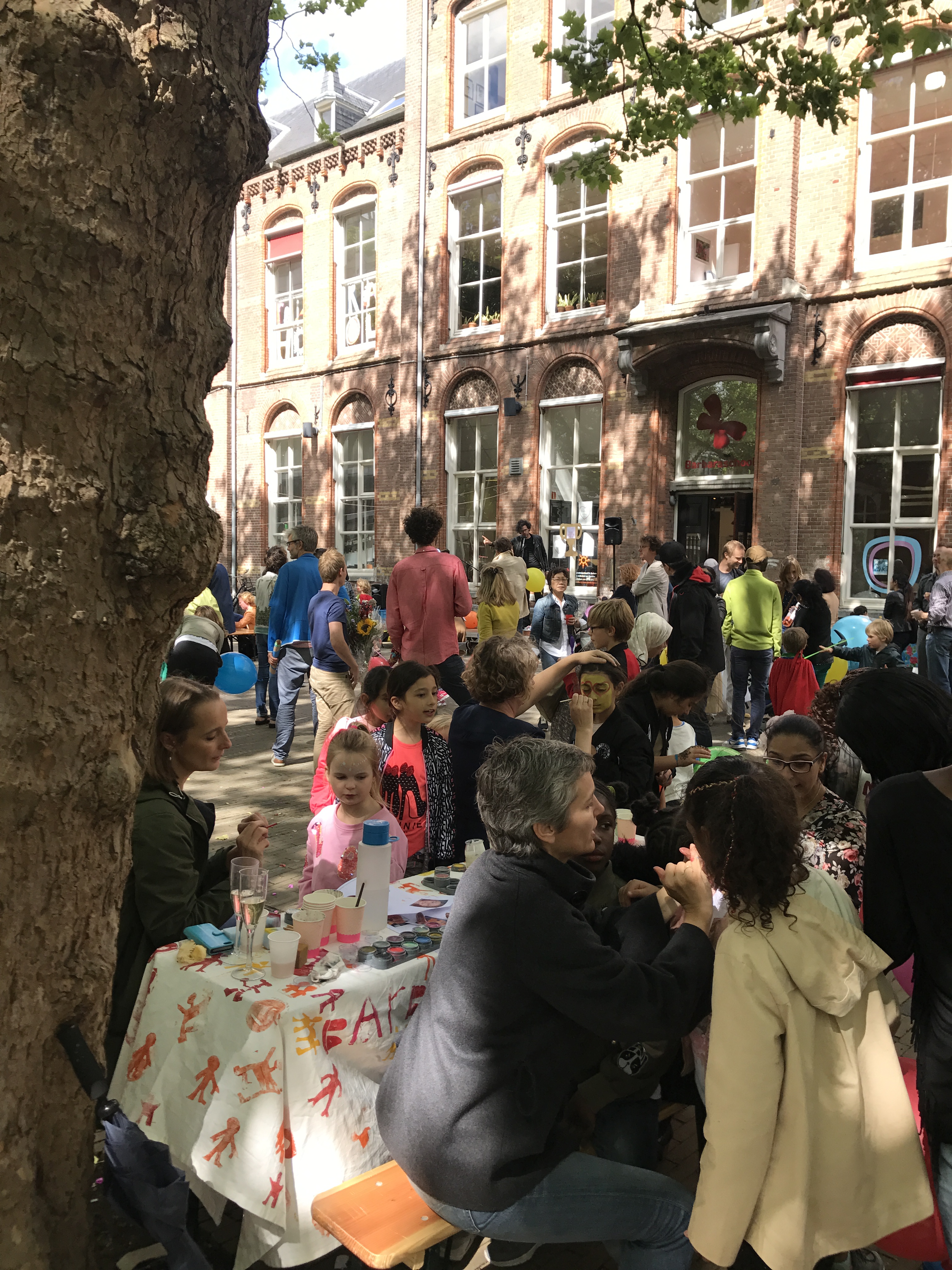 Met een confettikanon, schmink en henna is de juffen en meestersdag afgesloten. In aanwezigheid van alle kinderen, ouders en docenten is nog een keer stil gestaan bij het succesverhaal van de Barbaraschool. Aan lange tafels met door ouders gemaakt eten kon worden nagepraat en voor degenen met taalgevoel ontmoetten ouders elkaar in verschillende talen door een bijdrage te doen in de talen-ton.