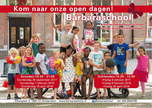Als u meer informatie wilt over de Barbaraschool en als u wilt weten of deze school past bij uw kind, kunt op de school bezoeken. De open dagen zijn gepland op